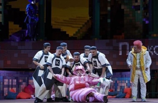 Zu einer ungemein kurzweiligen, interessanten, farbigen und bildgewaltigen Angelegenheit geriet die Neuproduktion von Sergej Prokofjews bereits im Jahre 1921 in Chicago aus der Taufe gehobener Oper Die Liebe zu drei Orangen an der Staatsoper Stuttgart. Hier fällt zuerst einmal auf, dass im Titel der Artikel den fehlt. Auf ihn wurde vom Produktionsteam aber bewusst verzichtet, um den Silben des Russischen besser zu entsprechen. Gesungen wurde in deutsch – Textfassung: Werner Hintze -, was angesichts der gut funktionierenden Übertitel fragwürdig und stilistisch ebenfalls problematisch war. Man hätte das Stück im russischen Original belassen sollen.