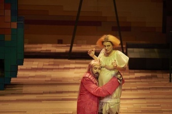 Geschickt werden die unterschiedlichen Ebenen miteinander verzahnt, was den großen Reiz von Ranischs Regiearbeit ausmacht. Die Überlagerung der verschiedenen Handlungsstränge war äußerst gelungen. Zu der Geschichte um den kranken Prinzen, den Zauberern und dem Computerspiel gesellt sich noch eine vierte Ebene. Bereits zu Beginn lässt Prokofjew eine Schar von Anhängern verschiedener Theatergenres auftreten. Es entbrennt Streit zwischen ihnen. Die Tragiker wünschen sich Tragödien, die Komischen Komödien und die Lyrischen eine Liebesgeschichte. Dann gibt es noch die Sonderlinge, auf deren Initiative die Aufführung des Stücks Die Liebe zu drei Orangen basiert. Ihnen kommt eine zentrale Stellung innerhalb des Stücks zu. Immer wieder greifen sie in die muntere Handlung ein und sind schließlich auch für den guten Ausgang verantwortlich. Sie werden von Ranisch als russische Aktivisten dargestellt, die das Stück zur Aufführung bringen. Sie befinden sich fast ständig auf der Szene und leiten vom rechten Teil der Bühne aus als Regieteam das Geschehen. Hier werden vom Regisseur gekonnt alte Theaterdispute thematisiert. Der Streit zwischen Gozzi und Goldoni scheint ebenso auf wie die Auseinandersetzung zwischen Meyerhold und Stanislawski. Dem Programmbuch ist zu entnehmen, dass es Gozzi um die Artifizialität bzw. die Natürlichkeit der Commedia dell’ Arte ging, während Goldoni um eine Reformierung des Schauspiels bemüht war und für das Ende der Improvisation und die Abschaffung der Masken plädierte. Stanislawski vertrat eine dem Naturalismus verpflichtete Psychotechnik. Als Abgrenzung dazu entwickelte Meyerhold seine radikal antirealistische Spielweise der Biomechanik. Um die Aufzeigung dieser Streitereien geht es Ranisch. Diese Dispute werden von ihm dann auch auf überzeugende Art und Weise miteinander in Einklang gebracht. Die Kämpfe werden beigelegt. Jede Art des Theaterspielens hat ihre Berechtigung. Das war alles gut durchdacht und perfekt auf die Bühne gebracht. Mit dieser überaus gelungenen Regiearbeit ist Ranisch und seinem Team ein kleines Meisterwerk gelungen, das überaus gut gefiel.