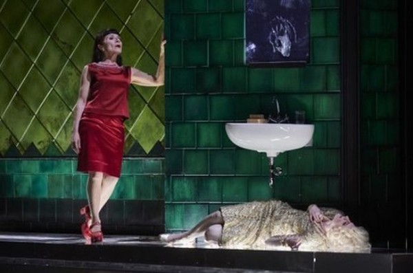 Glucks Oper stellt das letzte Kapitel aus der Familientragödie der Atriden dar und schildert das Aufeinandertreffen von Iphigénie und ihrem Bruder Orest auf Tauris. In Warlikowskis gelungner Inszenierung prallen gekonnt mehre Ebenen aufeinander und bilden eine Einheit. Iphigénie ist die letzte Überlebende ihrer Familie. Als alte Frau hat sie Zuflucht in einem Altersheim gefunden, das das Einheitsbühnenbild bildet. Dort lebt sie zurückgezogen mit vielen anderen bereits stark in die Jahre gekommenen Heimbewohnerinnen. Der nach hinten offene Raum hat seine besten Zeiten hinter sich. Im linken Bereich brachte die Bühnenbildnerin eine Reihe von Duschen an, auf der gegenüberliegenden Seite erblickt man mehrere Waschbecken. Ferner erschließen sich dem Blick ein Sofa, ein Tisch und Stühle. Ein im Vordergrund befindliches Bett dient Iphigénie als Ruhestätte. Den Hintergrund bildet ein eisernes Rolltor. Es ist ein recht trostloser Rahmen, in dem sich das Geschehen abspielt. Man ahnt, dass das Ganze bei Warlikowski keinen guten Ausgang nimmt.