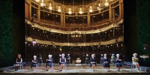Der Regisseur versteht sein Handwerk ausgezeichnet. Seine Personenführung ist spannend und stringent und die Zeichnung der zwischenmenschlichen Beziehungen sehr einfühlsam. Oftmals sind Personen auf der Bühne, für die Gluck an dieser Stelle gar keinen Auftritt vorgesehen hat. Mit Tschechow’schen Elementen kann Warlikowski umgehen. Auch Brecht huldigt er nachhaltig, wenn er im vierten Akt den Zuschauerraum in seine Deutung einbezieht und einige Szenen in den ersten Rang des Stuttgarter Opernhauses verlegt. So tötet Pylades den im Rollstuhl sitzenden, tätowierten und lädierten Despoten Thoas, dessen Verhalten hier nicht unverständlich erscheint, in der rechten Seitenloge. Die Göttin Diana und der Chor singen vom Orchestergraben aus. An die Stelle der Taurischen Priesterinnen treten die von ältlichen Statistinnen dargestellten Bewohnerinnen des Altenheimes. Im Programmheft sind die Biographien dieser Stuttgarter Damen abgedruckt. Zwischen diesen und Glucks Oper werden Ähnlichkeiten offenbar. Das echte Alter und das Alleinsein dieser betagten Frauen werden hier einfühlsam thematisiert. Am Ende des zweiten Aktes dürfen sie auch mal Kuchen essen. Geprägt wird die Bühne ferner von einer riesigen Spiegelwand, die die Befindlichkeiten der Protagonisten reflektiert und das Geschehen gekonnt in unsere Gegenwart transferiert. Wenn sich das Publikum auf diese Weise selbst erblickt, wird ihm vom Regisseur zudem der sprichwörtliche Spiegel vorgehalten.