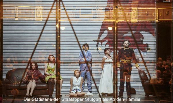 Die Stuttgarter-Zeitung schrieb am Tag der Premiere: Der polnische Regisseur Krzysztof Warlikowski versammelt eine Art von Frauen-Spiegelkabinett rund um seine Hauptfigur – und tatsächlich: hinter, zwischen, ja manchmal auch vor diesen Spiegelwänden bewegt sich den ganzen Abend die Atridenfamilie – Agamemnon in Generalsuniform, die junge Braut Iphigenie, Elektra, Chrysothemis, Achill – überdeutlich wird der Muttermord zelebriert: der nackte Orest reißt Klytemnästra die Kleider vom Leib und bringt sie brutal um. Als simpler Geist könnte man vermeinen: das (seit einiger Zeit weit verbreitete und beliebte) psycho-soziale Instrument der Familienaufstellung führt bei den Atriden letztlich zur Erlösung…