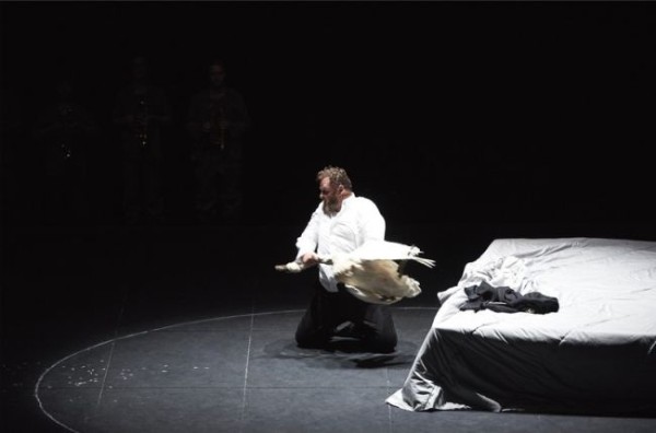 Der Gral bleibt nach Schillings Verständnis eine Utopie, eine Wunschvorstellung, die sich als Inbegriff des Guten in dieser Welt nicht durchsetzen kann. Es gibt eben nicht nur Hehres auf Erden, auch negativen Aspekten ist Tür und Tor geöffnet. Auch Lohengrin weist hier eine böse Seite auf. Das zeigt sich insbesondere im Brautgemach, wo er ganz unnötigerweise den unbewaffneten Telramund tötet. Der brabantische Graf ist hier von Anfang an das Opfer der ganzen Entwicklung. Er will Lohengrin nicht umbringen, sondern bemüht sich nur, die Situation zu begreifen. Er sieht, dass die Beziehung zwischen Elsa, die er einmal geliebt hat und vielleicht immer noch liebt, und Lohengrin ebenfalls nicht funktioniert. Gleichzeitig erkennt er, dass es falsch war, Ortrud zu vertrauen. Aus diesem Grund fühlt er sich nun als Sieger, kann sich seines Triumphes aber nicht lange freuen. Er wird von Lohengrin mit dem Messer der von gegenüber Telramund mit Rachephantasien beherrschten Elsa kurzerhand um die Ecke gebracht. Diese Tat lässt den Gralsritter nicht unberührt. Allein und mit sich selbst im Unreinen verfällt er während der Verwandlungsmusik des dritten Aufzuges in tiefe Verzweiflung. Er hat die böse Seite in sich erkannt, lehnt diese aber ab und sehnt sich nach dem Guten. Diese Erkenntnis verbunden mit der Sehnsucht nach dem Heil manifestiert sich in der Gralserzählung, die er im Sitzen vorträgt. Am Ende muss er die Gemeinschaft verlassen. Seine abschließenden, den neuen Herzog von Brabant betreffenden Worte, sind nicht an den hier nicht in Erscheinung tretenden Gottfried gerichtet, der wirklich tot ist – das ist eine Grundvoraussetzung von Schillings Inszenierung -, sondern an einen x-beliebigen Mann aus dem Volk, der von der überlebenden Ortrud kurzerhand als neuer Verantwortlicher für die Geschicke der Brabanter inthronisiert wird. Dem Volk scheint der Verlust Lohengrins gar nicht recht zu sein. Drohend nähert es sich Elsa, die es für die Misere verantwortlich macht. Diese richtet ihr Messer nun gegen sich selbst. Das war alles gut durchdacht und auch spannend umgesetzt. Lediglich der Chor blieb manchmal etwas zu statisch.