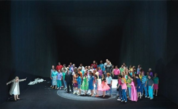 Hat sich dadurch aber etwas geändert? Zumindest hat es den Anschein – aber nur zuerst. In der zu Beginn von in grauem Einheitslook vorgeführten Männergesellschaft haben auf einmal auch die Frauen etwas zu sagen. In Lohengrin haben sie einen Verfechter ihrer Wünsche und Sehnsüchte gefunden, der der patriarchalischen Ausrichtung der Gemeinschaft eine klare Absage erteilt und auch das weibliche Geschlecht an der Politik teilhaben lässt. Als äußeres Zeichen dafür legen die Frauen bunte Kleider an und entledigen schließlich auch die Männer ihrer grauen Kostüme. Auch die Herren der Schöpfung sind zu Beginn des dritten Aufzuges auf einmal in abwechslungsreiche farbige Outfits gewandet. Damit ist der Weg von der Anonymität des Kollektivs zu individueller Freiheit geöffnet. Die Frauen erlangen eine Stärke wie sie auch Elsa aufweist, mit der zusammen sie in der Münsterszene einen Fluss aus blauen Mänteln kreieren, der später mit leblosen Schwänen garniert wird. Damit will der Regisseur laut Programmbuch ihre Fähigkeit ausdrücken, sich etwas vorzustellen, „das die Realität transzendiert, in einer miserablen Lage nicht so sehr in den Traum zu fliehen als vielmehr dank ihm zu überleben“.