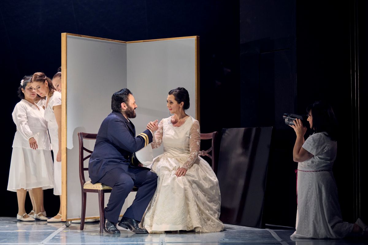 Auf hohem Niveau bewegten sich die gesanglichen Leistungen. Das begann schon bei Anna Princeva, die mit expressivem, expansionsfähigem und zu wunderbaren Lyrismen fähigem Sopran eine phantastische Cio – Cio – San sang. Herrlich, wie sie ihre bestens italienisch fokussierte, höhensichere und gefühlvolle Stimme dahinfließen ließ und dabei auch mit einer schönen Pianokultur aufwartete. Auch ihre darstellerische Leistung vermochte stark für sich einzunehmen. Neben ihr bewährte sich in der Rolle des von der Regie nicht gerade sympathisch angelegten Pinkerton Atalla Ayan mit ebenfalls vorbildlich italienisch fundiertem, kraftvollem und über sichere Spitzentöne verfügendem Tenor. Gut gefiel die sehr emotional und ebenmäßig singende Suzuki von Ida Ränzlöv. Ein markant und kräftig intonierender Sharpless war Lucio Gallo. Mit recht maskigem Stimmklang stattete Torsten Hofmann den Goro aus. Profundes Bass-Material brachte David Steffens in die Rolle des Priesters ein. Eine solide Kate Pinkerton gab Simone Jackel. Ordentlich schnitt Jacobo Ochoa als Fürst Yamadori ab. Ein Extralob gebührt dem Kind von Sam Schweizer. Ansprechend besetzt waren die zahlreichen Nebenrollen.