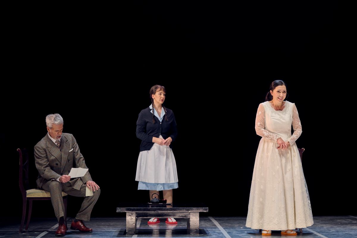 Frau Wagemakers hat sich über die Oper hervorragende Gedanken gemacht und mit einer ausgefeilten Personenregie spannend auf die Bühne gebracht. Erwähnenswert ist, dass sie an keiner Stelle der Gefahr erliegt, ins Kitschige abzugleiten. Das westliche Element und knallharter Realismus bilden den Ausgangspunkt ihres ansprechenden Konzeptes. Dazu gesellt sich noch ein gehöriger Schuss an Emotionalität. Jeglicher Art von altbackenem, total überflüssigem japanischem Flitter erteilt die Regisseurin eine klare Absage. Das tut dem Werk gut. Der Regisseurin ist in erster Linie daran gelegen, die allgemeinen, von Ort und Zeit unabhängigen Handlungselemente in ein gleißendes Licht zu rücken. Die stark reduzierte Ausstattung mit lediglich wenigen Requisiten trägt dazu nicht unerheblich bei. Das lenkt die Aufmerksamkeit des Publikums gänzlich auf die zwischenmenschlichen Beziehungen. Diese werden von Monique Wagemakers mit großer Akribie und enormem technischem Können herausgearbeitet. Die Protagonisten wirken niemals unbeteiligt, sondern sind stets voll präsent. Daraus resultiert eine starke Innenspannung, die vom Anfang bis zum Ende anhält und das Auditorium ganz in ihren Bann zieht.