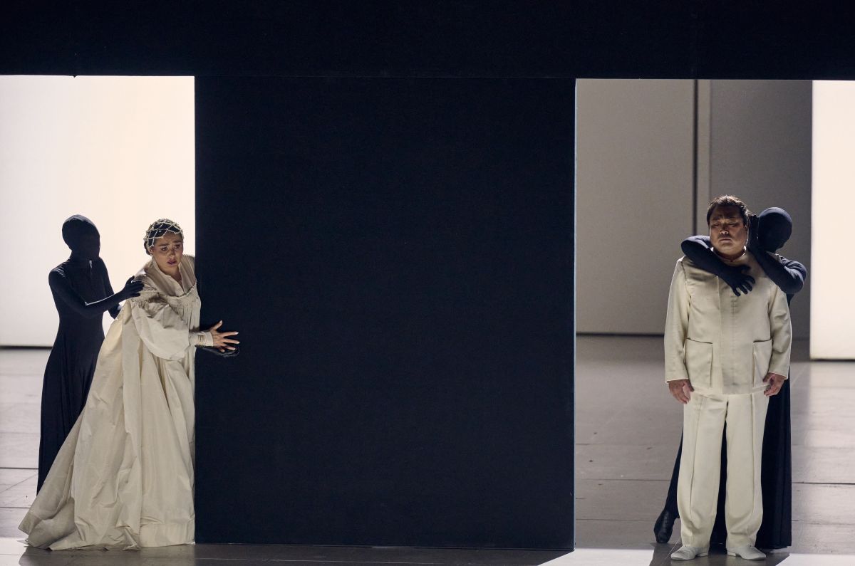 Seit einiger Zeit steht an der Stuttgarter Staatsoper Verdis Otello wieder auf dem Spielplan. Die Inszenierung von Silvia Costa, die auch für das gelungene Bühnenbild verantwortlich zeichnete, und Kostümbildnerin Gesine Völlm mutet recht sehenswert an. Sie ist moderner Natur, gleichzeitig aber schön anzusehen. Die dramatische Handlung spielt sich in einem klinisch kühl wirkenden, nach vorne hin offenen weißen Kasten ab. In diesem bewegen sich die Protagonisten wie in einem tableau vivant. Farben spart das Regieteam dabei aus. Sowohl die Bühne wie auch die Kostüme sind in schlichte Schwarz-Weiß-Töne gehüllt. Dadurch wird die Fokussierung auf die Handlungsträger noch intensiviert. Dieses Spiel der Regisseurin mit Schwarz und Weiß kann man getrost als den Kampf des siegreichen, indes ausgeprägtem Rassismus von Seiten der weißen Venezianer ausgesetzten ursprünglich dunkelhäutigen – hier weißen – Heerführers Otello deuten, was andererseits nicht unbedingt vonnöten ist. Gekonnt prallen hier verschiedene Dynamiken aufeinander, wodurch es zu einer Verstärkung der ästhetischen Ausrichtung von Frau Costas Interpretation kommt. Nachhaltig wird von ihr die Frage in den Raum gestellt, was Realität und was der Phantasie entsprungen ist. Dem Projektionsgedanken kommt in diesem Zusammenhang zentrale Relevanz zu. Alles in dieser Produktion atmet in irgendeiner Form den Charakter einer Projektion. Einfühlsam spielt die Regisseurin und Bühnenbildnerin mit Hell und Dunkel. Desdemona ist die einzige Person, die nicht in Schwarz-Weiß erscheint. Frau Costa sieht sie als Lichtgestalt, der sie eine spezielle Behandlung zu Teil werden lässt. Bemerkenswert ist der Fakt, dass Desdemona letztlich daran zu zweifeln beginnt, dass Otello ein guter Mensch ist. Sie fragt sich allen Ernstes, ob sie den richtigen Mann geheiratet hat.
