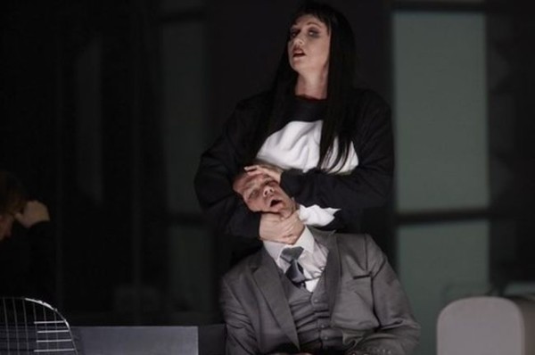 Dem Auditorium präsentiert sich ein äußerst gewalttätiges Ambiente. Dieses ist den Handlungsträgern durchaus nicht unbekannt. Herodes` Herrschaft ist ebenfalls von grausamer Härte geprägt. Die sprichwörtliche Knute wird von ihm anscheinend häufig benutzt. Da ist es nicht weiter verwunderlich, dass Salome Tod und Gewalt nicht fremd sind. Unter diesen Umständen ist es nachvollziehbar, dass das Geheimnis der Liebe für sie größer ist als das Geheimnis des Todes. Mit letzterem ist sie ständig konfrontiert. Sie ist in einen schwarzen Kapuzenpulli gekleidet, in dem sie alles andere als erotisch wirkt. Der Schleiertanz, in dem sich hier nicht die Tochter des Hauses entblößt, sondern einige Gäste bis auf die Unterwäschen entkleiden, bezieht Serebrennikov auf Herodes und nicht auf Salome. Er zeigt die Sehnsüchte und Wünsche des jüdischen Tetrarchen auf. In seiner Vorstellung tötet er sogar seine Gattin Herodias. Seine Stieftochter erscheint ihm als Gestalt mit Engelsflügeln, die er am Schluss des Tanzes heftig küsst. Das Ganze ist mithin nicht real, sondern Ausfluss seiner sich nach Liebe und Sexorgien sehnenden Phantasie. Der Psychologie kommt in dieser ganz aus dem Inneren heraus gedeuteten Szene zentrale Bedeutung zu. Sigmund Freud lässt grüßen.