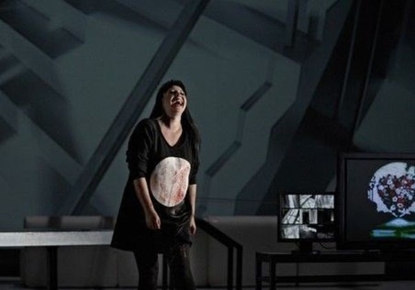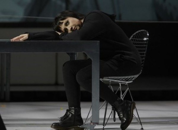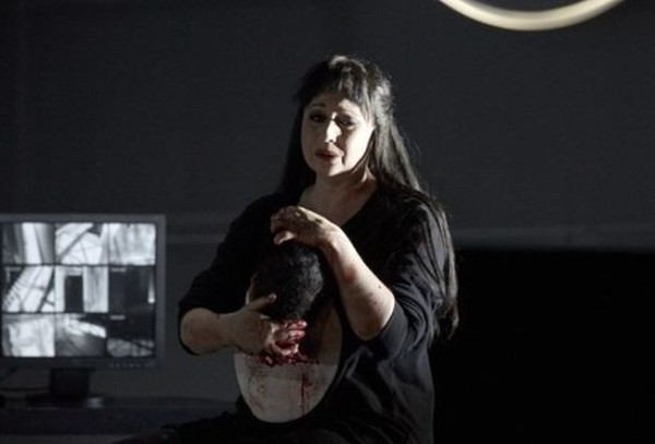 Die Kopfgeburten von Herodes müssen aber Luftschlösser bleiben. Die von ihm herbeigesehnte Harmonie bleibt aus. Schon wegen des prominenten Gefangenen ist das unmöglich. Offenkundig wird, dass er mit der Verhaftung des Jochanaan ein Eigentor geschossen hat. Diese wirkt friedlichen Verhältnissen diametral entgegen. Serebrennikov führt den Propheten als fanatischen moslemischen Prediger vor. Mit Blick darauf, dass Salome ihn gänzlich auf seine Körperlichkeit reduziert, hat er ihn zudem auch noch in eine Stimme und einen Körper aufgespalten. Die von Jochanaan mit mächtiger Stimme in die Welt hinausgeschrienen Hasstiraden sind einem Schauspieler anvertraut, der Gesang obliegt einem Sänger. Der Text wird sowohl in deutscher als auch in hebräischer Sprache auf die Hinterwand projiziert. Das Ende spielt sich ebenfalls nur im Kopf von Herodes ab. Sein Befehl, Salome zu töten, ist lediglich ein Wunschtraum, dem keine Erfüllung beschieden ist. Die Prinzessin überlebt und darf von einer erhöhten Warte aus auf den Ort des tragischen Geschehens hinabblicken. Das war alles sehr gut durchdacht und meisterhaft umgesetzt. Hier haben wir es mit einer vollauf gelungenen Inszenierung zu tun, die nachhaltig zu begeistern wusste.