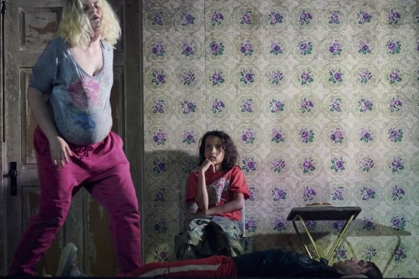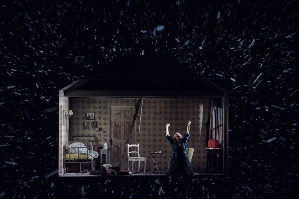 Auf der Bühne von David Zinn, für den ersten und dritten Akt identisch, für den zweiten Akt ein Zimmer in Minnies Hütte wie aus der dunklen Holzwand herausgeschnitten, dominieren außerdem ein Lieferwagen, der gern zum Erhängen von tatsächlich oder nur angeblich Straffälligen benutzt wird, und ein ausgestopfter Büffel, der den bisher geschürften Goldschatz der Männer bewahrt. Die Optik in der Produktion der amerikanischen Regisseurin Lydia Steier zerfällt demnach in eine ganz und gar konservativ-werkgerechte und eine dem Stück aufgepflanzte, aber nicht weiter störende. Und damit müssten eigentlich alle zufrieden sein, umso mehr, als die Personenregie eine einfühlsame, unaufdringliche und die einzelnen Charaktere der Goldschürfer fein herausarbeitende ist. Geschmackssache dürfte der wechselnde Hintergrundprospekt mit heftigen Wetterdramen sein, häufig in Bonbonfarben und die Szene dominierend, eindrucksvoll ist der Schneesturm, dem auch akustisch mit Einsatz aller Wind- und Wettermaschinen Zeit zugestanden und Nachdruck verliehen wird und durch den auch mal ein Stück Wild irren darf.