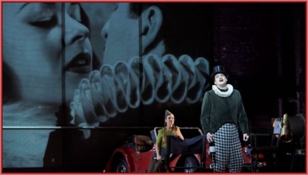 Immerhin war der Abend musikalisch durchaus ein Gewinn: Unter der energischen Stabführung von Mikhail Tatarnikov brachte die Staatskapelle Berlin Puccinis meisterhafte Partitur mit grandioser Farbenpracht zum Erblühen. Da waren all die impressionistischen Schattierungen, die dramatischen Explosionen und die subtilen Reminiszenzen zu hören – eine aufgeputschte Sinnlichkeit, die ohne Larmoyanz und Kitsch auskam. Zwischen dem ersten und dem zweiten Akt spielte man gar noch das Stück CRISANTEMI (wunderbar satt und warm die Streicher der Staatskappelle Berlin!), welches Puccini drei Jahre vor der Entstehung seiner MANON LESCAUT zum Tod des Herzogs von Savoyen geschrieben hatte. Das Hauptthema dieses Andante mesto hatte Puccini dann auch im Schlussbild der MANON LESCAUT verwendet. Ein guter Einfall – und natürlich ein Vehikel für die vielen Videoprojektionen auf den Zwischenvorhang, eine Fahrt im Cabrio von Manon und Des Grieux durch die Straßen der Traumfabrik (obwohl die beiden in dieser Inszenierung ja gar nicht zusammen durchgebrannt sind, denn Manon kehrt schon beim Fallen des Vorhangs ins Studio zurück und wirft sich Geronte an den Hals).