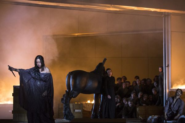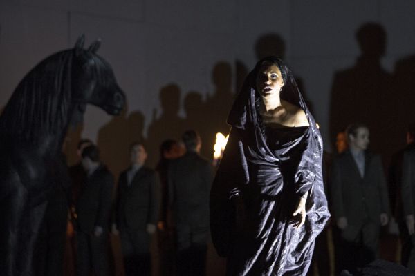 Was haben Wozzeck und Medée, zumindest auf Berliner Opernbühnen, gemeinsam? Lebensechte, riesige Gäule, in der Staatsoper sogar zwei, allerdings einer ohne Kopf, der neben dem Torso liegt. Und was findet man sowohl in Wozzeck wie in Medée als auch in Die tote Stadt, letztere in der Komischen Oper? Viele graugesichtige Männer in modernen Straßenanzügen , so dass man fast glauben möchte, es gebe keine Kostümbildnerei mehr, die Bühnen versorgten sich je nach Anspruch im Outlet-Shop oder beim Maßschneider in der Friedrichstraße. Des Rätsels Lösung sind die Gedanken, die man sich im Produktionsteam, insbesondere in der jeweiligen Dramaturgie über das jeweilige Stück gemacht hat. Die führten in der Staatsoper, wo Andrea Breth bei Cherubin is Medée Regie führte, einmal mehr zu „Sexismus“, „Raubkunst“ und „Lehman Brothers“. Man muss einfach zitieren, um den Schwachsinn, dessen Produkt eine extrem hässliche Bühne (Martin Zehetgruber) mit Rostflecken an den Entlüftungsgeräten, riesigen Rolltüren wie bei Großgaragen und vielen Kisten, wohl auch mit Raubkunst gefüllt, ist, in seinem ganzen Umfang deutlich zu machen: „Fotos von kriegsbedingter Verschleppung und Archivierung von Kunstwerken während der nationalsozialistischen Diktatur und ihrer Angriffskriege waren hierfür das Assoziationsmaterial.“