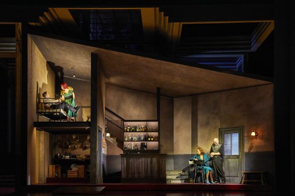 Die Bühne von Michael Yeargan zeigt einen „präfaschistischen“ Palast, vor den sich mal das Haus Rigolettos, mal das des Sparafucile schiebt, der Duca nächtigt im letzten Akt nicht all’aperto, sondern irgendwo um die Ecke, das Haus Rigolettos scheint ein rechter Taubenschlag zu sein, obwohl doch Gilda es angeblich nie verlässt. Man wird als Zuschauer das Gefühl nicht los, dass Rat- und Hilflosigkeit bei der Regie ihre Hand im Spiel hatten. Die Kostüme von Catherine Zuber sind schön und elegant für die Damen am Hofe, Gilda mit Söckchen wirkt eher spießig als unschuldig. Ob das an der Met, wohin die Produktion auch geht, gefallen wird?