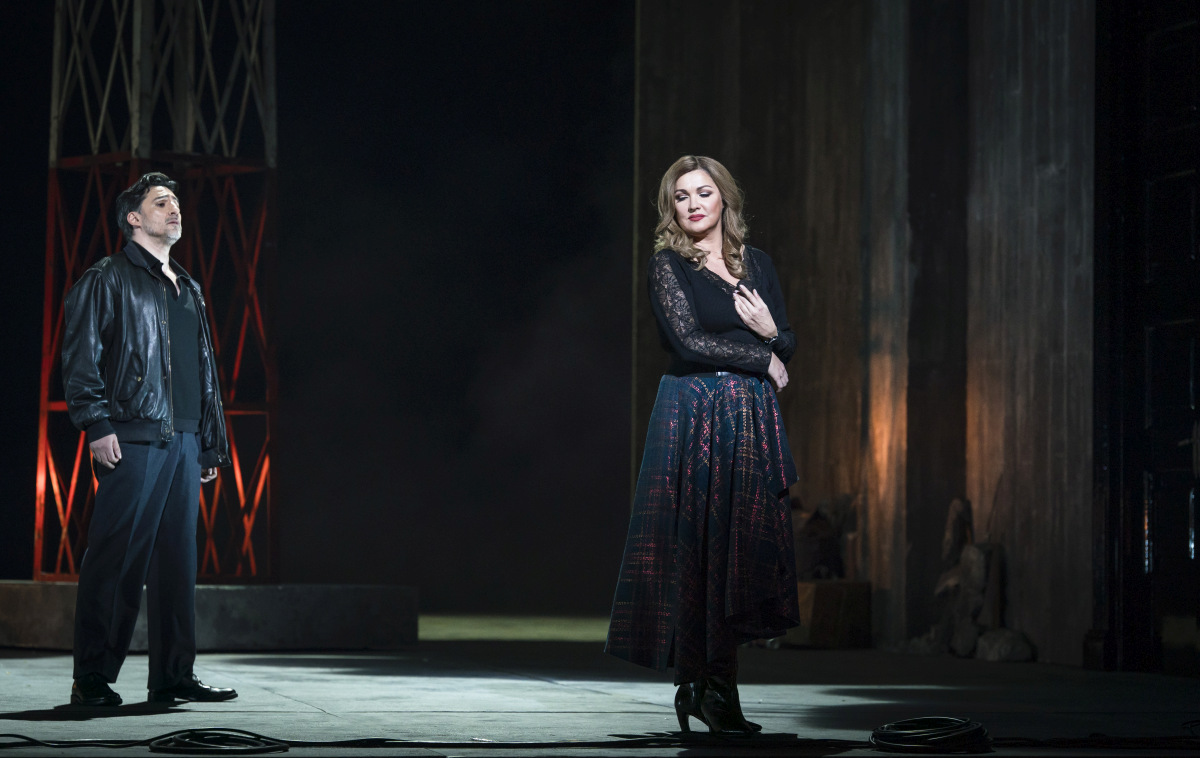 Die eleganteste Partie Verdis für einen Spintotenor ist sicherlich der Riccardo, den Charles Castronovo mit dunkel grundiertem, aber durchaus leuchtendem Tenor sang. Oft verlangt Verdi „con eleganza“, was der Sänger auch mit Pianissimi in der Canzone, schönen Staccati im „È scherzo od è follia“, die das Gelächter hörbar machten, mit einem durchweg aristokratischen Phrasieren befolgte. Eingesprungen für Ludovico Tézier als Renato war Amartuvshin Enkhbat mit gewaltigem, die Partie fast sprengendem Bariton dunkler Farbe, im Rachlüsternen noch mehr überzeugend als im lyrischen „Eri tu“, aber durchaus eine erfreuliche Besetzung. Einen ungewohnt stimmpotenten Richter, sonst den ältesten Ensemblemitgliedern vorbehalten, sang Junho Hwang, noch etwas düsterer hätten die beiden Verschwörer Manuel Winckhier und Friedrich Hamel klingen können. Angenehmes ließ der Silvano von Carles Pachon vernehmen. Dunkel orgelte Anna Kissjudit die auch noch im Schlussbild sich zu schaffen machende Ulrica, Enkeleda Kamani war ein quirliger Oscar oder was auch immer sie sein sollte, mit silbrig glänzenden Koloraturen und anmutigem Spiel. Ein einsames Ukrainefähnchen protestierte vor der Oper, während drinnen Anna Netrebko einen verdienten Triumph feierte, eine schöne Erscheinung und mit einer Stimme, für die die Amelia vielleicht schon eine Grenzpartie ist, mit dunkler Mittellage, schön pathetischer Phrasierung, und elegantem Pathos, strahlender, nur ganz leichte Schärfen andeutender Höhe und mit der Gabe, dem Publikum zu vermitteln, dass sie es gern und großzügig beschenkt.