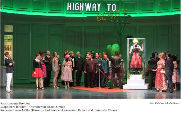 für eine gelungene Ausgrabung einer unbekannten Operette von Johann Strauss – Im Gespräch mit dem Intendanten Wolfgang Schaller wird dessen Stolz richtig spürbar, der Stolz darauf, erneut eine Ausgrabung eines unbekannten Werkes von Johann Strauss als großen Erfolg auf die Bühne gebracht zu haben. Und dieser Stolz ist vollkommen zu Recht vorhanden, denn nach „Der Carneval in Rom“, „Das Spitzentuch der Königin“ und „Prinz Methusalem“ ist dies nun die vierte Ausgrabung einer Strauss’schen Operette und macht Dresden zum Mekka der Strauss Freunde. So sitzen auch heute in der Premiere mit Dr. Eduard Strauss (dem Urgroßneffen von Johann Strauss), seiner Frau und seinem Sohn und dem Vorsitzenden der Deutschen Johann Strauss Gesellschaft Dr. Ingolf Roßberg viele weitere Mitglieder der Gesellschaft im Zuschauerraum – und eines kann man vorwegnehmen, sie alle waren begeistert von der spritzigen Darbietung des „Cagliostro in Wien“. Einige Stimmen, die ich nach der Premiere aufgefangen habe, werde ich am Schluss noch „anhängen“. Doch nun kurz zu dem Stück, welches nicht jedem Operettenfreund geläufig sein dürfte.