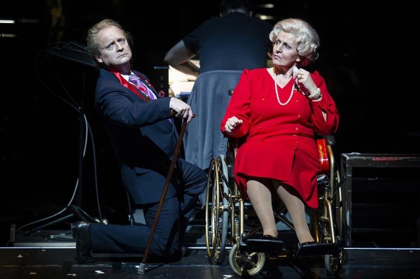 Ingeborg Schöpf, die Grand Dame des Hauses brillierte einmal mehr, hier als alternde Herzogin, ausstaffiert wie die Queen, sehr distinguiert und im Rollstuhl sitzend. Sie hat alles, was man von einer Operetten-Diva erwartet, glanzvolle Stimme, Spieltalent und Charme. Mit dem hierzulande sehr beliebten profilierten Kabarettisten Tom Pauls als Finanzminister beim Herzog von Mantua, hoffte man offenbar, das Publikum zu gewinnen, aber ihm schien das Ganze nicht den richtigen „Spaß“ zu machen. Er rezitierte „sein“ Gedicht und sang sein Couplet mit Qualität, konnte sich aber kaum als Persönlichkeit zwischen „Schatzmeister“ bzw. „Investor“ entfalten, und der bei ihm sonst mitreißende „Funke“ wollte nicht überspringen.