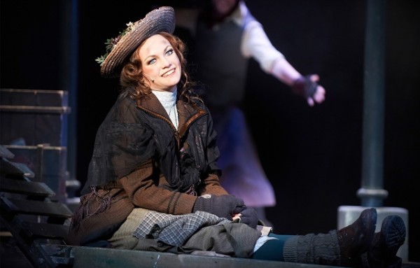 Beschwingte Besucher lassen sich durch das Blumenmädchen in „My Fair Lady“ bezaubern. Gut, ich gebe es zu, das Musical ist nicht so mein Metier, ich gehe nur selten in eines und wenn, dann in eines der Anfängerjahre, weil da doch noch Operettenähnlichkeit besteht. Und gut, ich gebe es zu, dass ich es noch weniger mag, wenn man mit angeklebten Mikrofonen auftreten muss (obwohl manche der Sänger auch gut ohne ausgekommen wären). Um die Tage in Dresden gut auszunutzen, ging ich aber nach der sehr gut gelaufenen „Verkauften Braut“ zwei Tage später in „My Fair Lady“. Und ich muss zugeben, dass ich es nicht bereut habe. Einmal weil es noch ein Musical mit sehr vielen, sehr schönen unterschiedlichen Melodien ist, was man von den neueren Musicals nicht sagen kann und vor allem auch deswegen, weil der von mir in „Die verkaufte Braut“ noch so gescholtene Frank Blees hier eine Supervorstellung gab. Doch dazu später mehr.