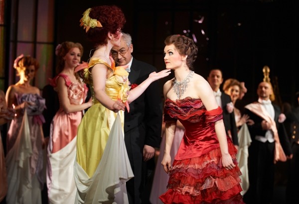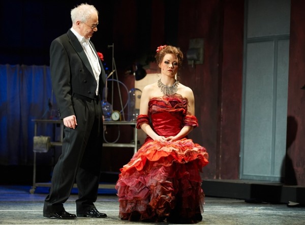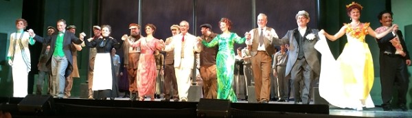Bei den Sängern muss man beim Musical natürlich Abstriche machen, vielfach sind es Schauspieler mit nicht so großen Stimmen. Die Praxis beim Musical ausgebildete Opernsänger einzusetzen ist noch nicht weit fortgeschritten. Und auch die furchtbaren aufgeklebten Mikrofone muss man in diesem Fall mehr oder weniger akzeptieren. Und im Großen und Ganzen haben die Singschauspieler auch überwiegend Spaß gemacht. Tom Pauls legt den Professor Henry Higgins mit leisen Tönen an, geht auch des Öfteren in den Sprechgesang, ist mitunter auch etwas leise (trotz des Mikrofons), bringt die Gestalt des selbstverliebten Gockels, der auch noch stark am Rockzipfel der Mama hängt, jedoch charmant, nett und mit Überzeugungskraft über die Rampe. Eine rollendeckende Gestaltung von Tom Pauls. Als Eliza Doolittle weiß Olivia Delauré zu überzeugen. Und zwar überzeugt sie sowohl in der einfachen vulgären Sprache sprich Gesang, als dann auch in dem musikalischen Ausdruck der „feinen Dame von Welt“. Sie ist auch optisch nett anzusehen und erfüllt die Rolle der kleinen Blumenfrau mit viel Leben und erntet zu Recht großen Applaus des angetanen Publikums. Frank Blees als Alfred P. Doolittle, dem Vater von Eliza, gelingt die – aus meiner Sicht – mit Abstand beste Interpretation des Abends. Sein weicher und gepflegter Bass-Bariton, den er jedoch zum Beispiel in „Hei, heute Morgen mach´ ich Hochzeit“ auch in andere Töne zu bringen in der Lage ist, überzeugt ohne Einschränkungen. Wenn sich Frank Blees auf die Rollen beschränkt, die nicht unbedingt einen schwarzen Bass a la Kurt Böhme oder auch Gottlob Frick erfordern, wird er noch viele Beifallsstürme ergattern können. Heute also uneingeschränktes Lob. Dieses Lob auch für den von Hans-Jürgen Wiese überzeugend interpretierten Oberst Pickering, der das Schlimmste von Eliza fernhält, weil er menschlicher und einfühlsamer ist als der Sprachwissenschaftler.