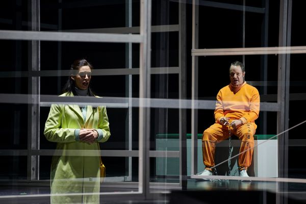 In Braunschweig gibt es kein naturalistisches Gefängnis mit Todes-Zellen, sondern die nur äußerst sparsam möblierte Bühne wird durch hohe, eher abstrakte und durch die Drehbühne veränderbare Gitter beherrscht (Ausstattung: Adriane Westerbarkey), in denen sich die à la Guantanamo gekleideten Gefangenen bewegen. Ein besonderes Licht auf die Eintönigkeit des Gefängnisalltags wirft der im Hintergrund sich fast ständig auf einem Laufband bewegende namenlose Gefangene. In der kargen Umgebung erwies sich die Kunst der Regisseurin Florentine Klepper, alle sehr glaubwürdig und nachvollziehbar agieren zu lassen. Gerade in den schon erwähnten leiseren Abschnitten zeigte sich das herausragende Vermögen des gesamten Ensembles. So fesselten die Gespräche von Sister Helen und dem Todeskandidaten Joe über die bevorstehende Hinrichtung und das von Helen immer wieder erbetene Geständnis in besonderer Weise. Mit ihrem großvolumigen, sicher durch alle Lagen geführten Mezzosopran und einer gut nachvollziehbaren Darstellung bewältigte Isabel Stüber Malagamba die große, ungemein fordernde Partie der in ihrer hoffenden Zuversicht auf Gottes allen vergebende Güte unermüdlichen Helen. Joseph war Michael Mrosek, der einen stets durchschlagskräftigen Bariton hören ließ und die Nachdenklichkeit des Todeskandidaten differenziert gestaltete.