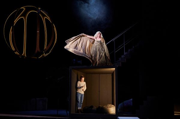 Kommen wir zur musikalischen Seite der Repertoire-Vorstellung, die insgesamt nur als solide gewertet werden kann. Das im Ganzen zuverlässige, wie schon bei „Alcina“ allzu bläserlastige Staatsorchester brauchte unter der antreibenden und dabei präzisen Leitung von Christine Strubel einige Zeit, um sich zu finden; erst im zweiten Teil der flott musizierten Ouvertüre gelang der nötige Zusammenhalt. Woran es lag, dass der aus dem Off gesungene Schlusschor fast auseinander fiel und die beiden Solisten am Ende der Feuerprobe gesanglich reichlich ins Straucheln gerieten, konnte nicht festgestellt werden. Sonst gefielen die durchaus ausgewogenen Chöre; besonders klangschön gelang den Herren „O Isis und Osiris“ (Georg Menskes, Johanna Motter). Ob die Pamina – hier zunächst als Jugendliche in Jeans und weitem Pullover – das Richtige für die in Braunschweig beliebte Sopranistin Ekaterina Kudryavtseva ist, bezweifle ich. Die durchgehend lyrische Tessatura beherrscht sie natürlich, wie sie mit der ansprechend interpretierten g-Moll-Arie „Ach, ich fühl‘s“ bewies. Aber so manche unreinen Töne im Höhenbereich ließen zweifeln, ob sie nicht doch den rein lyrischen Partien allmählich entwachsen ist. Leider konnte sie im schönen Terzett mit Tamino und Sarastro „Soll ich dich, Teurer, nicht mehr sehn“ nicht glänzen, weil dies dem Strich zum Opfer gefallen war. Dadurch war übrigens Paminas zum Suizid-Versuch führende Verzweiflung zu wenig glaubwürdig. Der Gast aus Leipzig Patrick Vogel als Tamino hatte sich gut in die Inszenierung eingefunden, sang aber mit einer nicht immer angenehmen Lautstärke, lyrische Tongebung war seine Sache nicht.