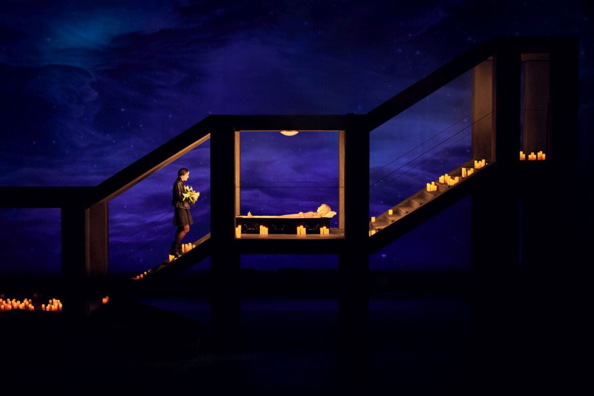 Nach über dreißig Jahren hat sich das Staatstheater erneut der hierzulande selten gespielten Belcanto-Oper in einer Neuinszenierung angenommen und damit die wohl berühmteste Liebesgeschichte der Literatur auf die Bühne gebracht. Romeo und Julia (Giulietta) haben sich bei Bellini und seinem Librettisten Felice Romani schon längere Zeit vor Beginn der Handlung unsterblich ineinander verliebt, obwohl sich ihre Familien, die Capuleti unter Führung von Giuliettas Vater Capellio und die Montecchi, in einer Dauerfehde befinden. Warum diese Feindschaft zumindest verstärkt wurde, zeigten zur Ouvertüre Mitglieder der Kinderstatisterie: Romeo, hier konsequent als weiblich dargestellt, ist die Erbin der Montecchi, die in jugendlichem Alter bei einem tragischen Unfall den Sohn Capellios tötet. Wie es in neueren Inszenierungen inzwischen öfter geschieht, beispielsweise in Passau oder Magdeburg, werden auch in der Braunschweiger Neuinszenierung Romeo und Giulietta als lesbisches Paar angesehen, was konsequent bis zum deutschen Text der Untertitel durchgehalten wird.