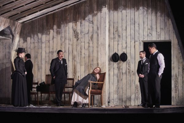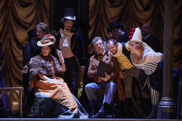 Das Inszenierungsteam hatte die Story von der Mitte ans Ende des 19. Jahrhunderts verschoben, „eine Zeit, in der bereits die Moderne und der Aufbruch dämmern. Besonders die Mode dieser Zeit bietet sich für die Bühne an.“ (so die Kostümbildnerin Julia K. Berndt im Programmheft). Im 2. Bild, eher Zirkus und Varieté als das Pariser Café Momus, gab es nun eine wahre Kostüm-Orgie, als Jongleure, Clowns, Zirkus-Bedienstete, Can-Can-Tänzerinnen, Transvestiten und am Schluss die Banda auftraten (Choreografie: Liliana Barros). Sie alle verbreiteten zusammen mit den Solisten einen derartigen Wirbel, dass man gar nicht alles mitbekommen konnte, was da geschah. Im Gegensatz dazu war das 3. Bild deutlich auf das Wesentliche reduziert: Man sah durch einen Torbogen auf eine kahle, allmählich vom Schnee bedeckte Fläche – da traten die Musik und das Geschick des Liebespaars Mimi/Rodolfo angemessen in den Mittelpunkt.