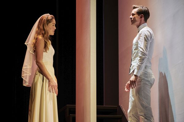 Auch in Braunschweig setzt man Corona-bedingt auf kleinformatige Werke. Da kam das Kammermusical von Jason Robert Brown für 2 Personen und kleine Band sehr gelegen, der darin das Scheitern seiner ersten Ehe verarbeitet hat. 2001 in Chicago uraufgeführt, erlebte es seine deutsche Erstaufführung vier Jahre später in Wuppertal, hatte aber nie so anhaltenden Erfolg wie andere Stücke dieser Gattung. Das mag an dem ungewöhnlichen Umgang mit einem doch so bekannten Thema liegen: Zwei junge Leute treffen aufeinander und verlieben sich, Jamie, ein schon mit 23 Jahren erfolgreicher Autor, und Cathy, die immer wieder vergeblich um ein Engagement in New York kämpfende Schauspielerin. Es kommt zur Hochzeit, und danach geht es mit der Beziehung allmählich bergab bis zur Trennung nach 5 Jahren. Brown lässt Jamie die Geschichte chronologisch erzählen, während Cathy sie vom Ende her aufrollt, wobei die Beiden nur einmal, nämlich bei der Hochzeit nach 2 ½ Jahren, direkt kommunizieren.