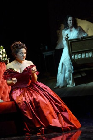 Die Bilder stammen von Barbara Aumüller. Sie zeigen als Violetta die Sängerin der Premiere, Liana Aleksanyan. Weitere Bilder weiter unten bei der Premierenkritik.