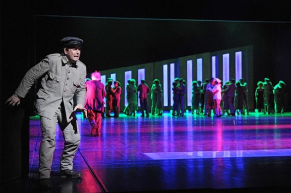 Die beiden Werke werden vom Hausherrn John Dew gekonnt in Szene gesetzt. Er macht aus den Opern keine Ausstattungsstücke, sondern lässt das Ganze in äußerst spärlich eingerichteten Räumen spielen, für die Dirk Hofacker verantwortlich zeichnet. Gurlitts „Wozzeck“ wird von kargen Betonwänden dominiert, die mit Hilfe der Drehbühne gegenseitig verschoben werden und sich derart zu einem Raum zusammenfügen können und so die einzelnen Spielorte bilden. Bei Bergs Stück spielt sich die dramatische Handlung oftmals in einem total leeren Raum ab. Da fällt das aus dem Boden aufsteigende, reichhaltig eingerichtete Wissenschaftslabor des Doktors samt des als Kleiderständer benutzen Skelettes fast etwas aus dem Rahmen. In beiden Fällen weiß Dew die Stärke des Raumes hervorragend zu nutzen und mit eindrucksvollen, sehr ästhetischen Lichtstimmungen – ein Bravo für den Beleuchtungsmeister! – zu versehen. In diesem Ambiente lässt er das Geschehen jeweils mit einer ausgezeichneten, flüssigen und intensiven Personenregie geradlinig, schnörkellos und ohne jegliche Verfälschungen ablaufen, wobei er – darauf verweisen José-Manuel Vázquez’ gelungene Kostüme – Gurlitts „Wozzeck“ in der Biedermeierzeit ansiedelt, denjenigen von Berg dagegen in der Entstehungszeit des Werkes, der Weimarer Republik, spielen lässt. Das Auseinanderdriften des zeitlichen Rahmens bei jeweils gleicher Thematik unterstreicht dabei trefflich die Zeitlosigkeit des Stoffes. Die dargestellten Konflikte können in jeder Ära auftreten. Durch den fast leeren Raum erfahren diese eine treffliche Focussierung. Hier lenkt kein äußerer Prunk von den Nöten Wozzecks ab. Lediglich die Szene, in der bei Berg die Unterbühne zu den Wellen des Sees mutiert, in denen Wozzeck sein Leben aushaucht, mutete entbehrlich an. Das war aber nur eine Kleinigkeit. Ingesamt sind Dew zwei gute, in keinster Weise zueinander in Beziehung gesetzte bzw. aufeinander aufbauende Regiearbeiten gelungen. Schade nur, dass er dabei nur stets stark am jeweiligen Text entlang inszenierte, ohne dabei mit einem stringenten übergeordneten Konzept politik- oder gesellschaftskritischer Art aufzuwarten. Da hat dann doch leider etwas Wesentliches gefehlt.