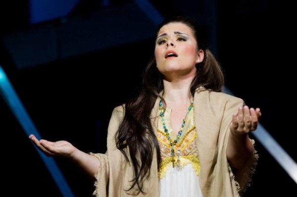 Auch bei der Besetzung der Solisten ließ das Theater mit einer Mischung von bewährten Gastsängern und Ensemblemitgliedern nichts anbrennen. Zu den regelmäßigen Gästen in Gießen gehört Giuseppina Piunti. Sie sang die Isabella. Von nobler und zugleich feuriger Bühnenerscheinung, über welche die historische Isabella nach den bekannten Portraits zu urteilen nicht verfügte, gestaltete sie ihre Rolle stimmlich mit sattem Mezzo und schönen leuchtenden Höhen, wenngleich die Stimme etwas eindimensional klang und im Blick auf eine bessere Textverständlichkeit mehr Modulation und Nuancierung gebrauchen könnte. Naroa Intxausti war als Zulema besetzt; sie verfügt über den rollenspezifischen silbrig-hellen Sopran, sang sich im Verlauf immer besser in ihre Rolle und entwickelte schöne Geschmeidigkeit unter dem in der Höhe etwas spitzen Vibrato. Michaela Wehrum aus dem Gießener Opernchor gab in der Nebenrolle der Almeraya, Zulemas Dienerin mit schlankem, gut fokussiertem Mezzo. Der Uruguayer Leonardo Ferrando war als Gonzalo besetzt und setzte mit seinem hellen Belcanto-Tenor positive Akzente setzen: beweglich in den Koloraturen und höhenfest ohne Schärfe bei sehr ordentlicher Textverständlichkeit. Seinen Freund Lara gestaltete Adrian Gans als kräftigen draufgängerischen Haudegen mit durchschlagsstarkem hellem, in der Höhe aber nicht recht fest sitzendem Bariton. Calin Valentin-Cozma überzeugte als Muley-Hassam, Vater der Zulema, mit mächtigem, runden Bass. Tomi Wendt bestritt die kurzen Auftritte des Boabdil mit schön konturiertem, kultivierten Bariton. Aleksey Ivanov, ebenfalls vom Gießener Chor, gefiel als Alamar mit kräftigem Bass.