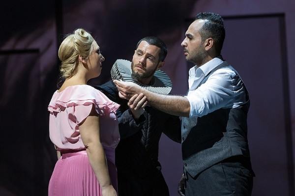 Auch musikalisch wird allerhand geboten am gestrigen Abend. Angela Davis ist die Königin in einen durch die Bank blendend aufgelegten Solistenensemble, verkörpert die bedauernswerte Cristina zwischen Liebe, Hoffnung und Verzweiflung und zaubert mit ihrem voluminösen Sopran die herrlichsten Farben. Vero Miller als ihre Gegenspielerin Amalia versieht ihren warm strömenden Mezzo mit der notwendigen Schärfe, wenn sie sich von der Geliebten in eine streitbaren Furie verwandelt, so gelingen ihr beeindruckende Ausbrüche. Denis Yilmaz gestaltet den hin- und hergerissenen Vito mit kraftvollem Tenor, solider Höhe und hinreißenden Piani. Die wahrhaften Gefühle, die der türkische Sänger über den Graben schickt, machen ihn zu einem Verismo-Sänger, der Giordano höchst selbst gefallen hätte. Florian Spiess ist nicht nur körperlich überragend und beeindruckt mich als Marco mit samtenem, kultiviert klingendem Bass. Der junge Österreicher singt mit Verve und macht Lust auf mehr. Grga Peroš kann als Annetiello ebenso mit Wohlklang überzeugen wie Marie Seidler als Nunzia.