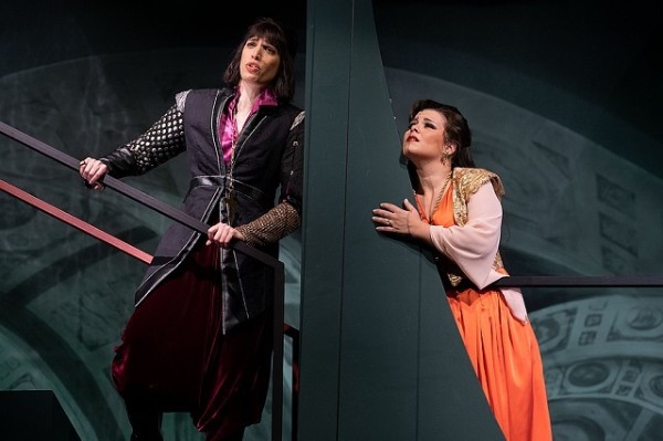 Der reduzierte Orchesterapparat erweist sich als sehr sängerfreundlich. So kann Naroa Intxausti in der Titelpartie ihre Qualitäten ausspielen. Die langjährige Gießener Stammsängerin verfügt über einen schlanken, hellen, fast silbrigen Sopran, der sie für quirlige Soubretten-Rollen prädestiniert. Die Zaira erfordert an sich eine üppigere, zu dramatischen Weiterungen fähige Stimme. Unter den Verhältnissen des intimen Theatersaals erweist sich aber die Wendigkeit der Intxausti als Vorzug. Mühelos präsentiert sie Koloraturen und Verzierungen. Ihr leichtes, schwebendes Piano füllt den Gießener Zuschauerraum mühelos und weiß zu berühren. Hier hat sie ihre stärksten Momente. Ausgezeichnet fügt sich ihre Stimme zudem in die Duette und Ensembles ein. Lediglich dann, wenn sie zu dramatischer Emphase ausholt, neigt sie zum starken Tremolieren. Als ihr (zunächst unerkannter) Bruder Nerestano überzeugt Na’ama Goldman mit satten und dunklen Mezzotönen. Sie bleibt der Partie nichts an dramatischer Glut schuldig, ist als junger Mann stimmlich wie optisch glaubhaft und überrascht immer wieder damit, wie souverän und unangestrengt sie auch ihre Höhenlage präsentieren kann.