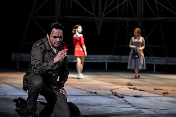 In Carmens Tod ortet das Regieteam allerdings einen „Femizid“, weil sie entgegen dem Besitzanspruch des Mannes – in seiner „toxischen Maskulinität“ – auf ihrer Freiheit besteht, als femininer „outlaw“. Sie ist nicht zuletzt aufgrund ihrer Herkunft, die ihr jeglichen sozialen Aufstieg versagt, für den Dramaturgen Mutschler ein Beispiel für „das mehr als latente Ausgeliefertsein der Frau.“ Da haben wir sie also wieder, die klassische Opferrolle der Frau. Dabei ist eigentlich in den bei weitem am meisten zu sehenden „Carmen“-Inszenierungen und wohl auch bei Bizet selbst der Mann das Opfer. Denn Carmen hat durch ihren unbeugsamen Freiheitsdrang eine enorme Souveränität – auch über sich selbst, während Don José sich selbst zum Opfer macht, weil er sich zwischen einem durch Erziehung naheliegenden konventionellen Lebenskonzept – symbolisiert durch Micaela – und Carmen nicht entscheiden kann. Daran scheitert er am Ende und bringt ihr den Tod, weil er sich diese Schwäche und sein Versagen nicht eingestehen kann. Erst da ist auch sie dann wirklich Opfer.