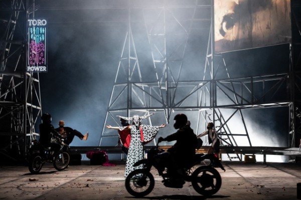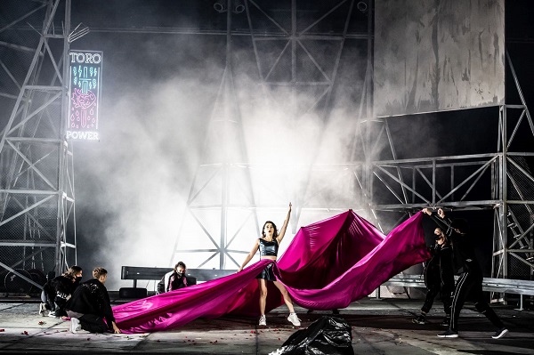 Statt des Chores läuft aus Hygienegründen eine Balletttruppe mit Mundschutz auf, die neben akrobatischen Einzelleistungen gleichwohl sehr laut wird und am Ende des Torero-Liedes sogar aus voller Kehle mitbrüllen darf und dabei einen nahezu unerträglich kakophonen Geräuschpegel erzielt! Hinzu kommt allerhand Müll, der herumsteht oder durch die Gegend fliegt, Bierkästen, Autoreifen, Ölfässer, ein shopping cart, ungeachtet musikalischer Gegebenheiten hupende Motorroller – alles so schon oft gesehen, aber dadurch nicht besser. „Carmen“ in the gutter…