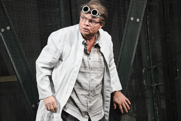 Und die Hauptsache, die Musik? Das Staatsorchester Kassel spielt unter Francesco Angelico einen äußerst sublimen Wagner. Klingt das Vorspiel zunächst noch etwas analytisch, so merkt man bald, was gemeint ist. Die äußerste Klarheit paart sich mit einer poetischen Delikatesse, in der langsame Verläufe besonders wichtige Stellen betonen. Überhetzt ist hier nichts, im (subjektiv) richtigen Tempo alles. Würden alle Sänger so genau singen wie der Loge des Lothar Odinius, würde man tatsächlich schon aufgrund der Tempi jedes Wort verstehen. Apropos Loge: dessen Lobeshymne auf die „Weiber“ erinnert wohl nicht zufällig an Mendelssohn, dem Wagner einiges an Material, wohl auch an Klangorganisation verdankte, ohne dass je der Einruck aufkäme, dass es sich beim „Rheingold“ um anverwandelten Mendelssohn handelte. Nur spielt das Orchester jene Feenmusik heraus, die weite Teile der Partitur aufweist. NB: Man sollte alle Ignoranten, die immer noch von Wagners „Bombast“ schwafeln, in diese Aufführung schicken und ihnen die Augen verbinden – danach wären sie von ihrem Irrtum geheilt. Und wenn es mal kracht, dann auf kultivierte Art. Der Auftritt der Riesen, mit dem schweren Blech auf der rechten Seite, kommt gestochen scharf und eindrücklich her, dabei wuchtig und zugleich hell. Dass das Finale mit seinem affirmativen Walhall-Jubel so hohldröhnend wie an diesem Abend klingen muss, versteht sich von selbst. Für die Rheintöchter steht dagegen kurz zuvor der metallisch hervorstechende Klang der höchsten Harfentöne ein; dass die drei Schönen sich vorn und nicht unten oder hinten befinden, ist sehr gut: denn so versteht man die zentrale – und von Wagner herrlich harmonisierte – Botschaft der drei Damen umso besser. Sie heißen Elizabeth Bailey, Marie-Luise Dreßen und Marta Herman, sie tun, wenn auch nicht an Alberich, einen guten Dienst. Alberich ist Thomas Gazheli, den ich in einer so exotischen Wagnerrolle wie der des Friedrich im „Liebesverbot“ in guter Erinnerung habe. Sein Alberich ist leicht guttural, dramatisch ausdrucksvoll, stimmlich potent. Der König der Götter heißt Bjarni Thor Kristinsson, dessen Bass eine mächtige Tiefe aufweist und in der Höhe an Alan Titus‘ Wotan erinnert, ohne so stark zu knödeln. Wichtig in den finsteren Stahl- und Gittergängen Nibelheims: der erbarmungswürdige, fast verrückte Mime des Arnold Bezuyen. Früher war er Loge in Bayreuth, nun ist er Mime in Kassel. Er gestaltet, mit vokalem und körperlichem wie mimischem Einsatz, die Partie mit größter Bravour. Ulrike Schneiders Fricka, mehr noch die weinrot tönende Erda der Marlene Lichtenberg: sie halten das gute Kasseler Niveau. Weniger beeindruckend: der erstaunlich helle, gar nicht riesenhafte Bariton des Fasolt, Marc-Olivier Oetterli, der auch den tieferen Ausdruck vermissen lässt, und der arg gaumige Rúni Brattaberg als Fafner. Angemessen: Jaclyn Bermudez‚ Freia. Bleiben die „kleinen“ Götter, die teilweise Erstaunliches aufbieten: besonders der sonore Donner des Hansung Yoo. Neben ihm steht Tobias Hächlers Froh. Loge aber dominiert im 2. Bild mehr als die Szene. Lothar Odinius ist ein Vorbild an Stimmschönheit, genauester Artikulation, Spielwitz und intelligenter (und durchaus nötiger widersprüchlicher) Rollengestaltung. Chapeau!