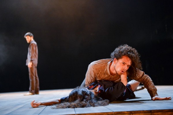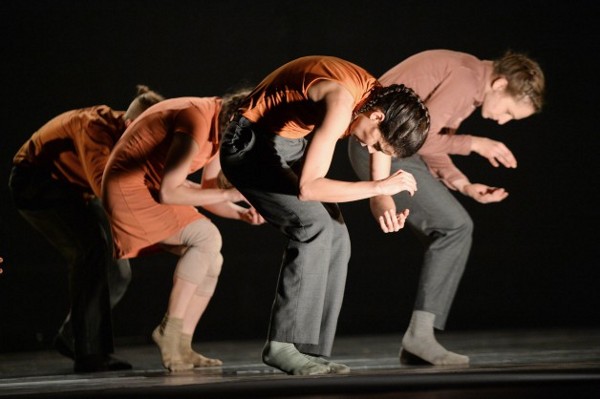 „’Dog‘ ist ein Schnelldurchlauf durch die Evolutionstheorie: Elefanten, Delphine, Affen und Menschen – sie alle tauchen auf in einer wilden Jagd rund um Darwins ‚Kampf ums Dasein‘ (Struggle for Life). Hofesh Shechter sieht noch lange kein Ende in der Geschichte der Evolution: it’s not ower yet.“ Den Hund, der auf allen Vieren kriecht, sieht man, auch gebückte Gestalten im betörenden Halbdunkel (Licht: Lawrie McLennan), die in Gruppen wedeln oder einzeln kommunizieren, aber schon nach wenigen Minuten driften die Gedanken ab: hin zu seltsamen Menschen, die sich kaum berühren, sich umfangen wollen, sich anziehen und doch abstoßen. Zum einfachen und packenden Rhythmus der Tribal Beats werden wilde und doch konzentrierte Tänze getanzt, zu lauten Verschluss-, Pfeif- und Schmatzgeräuschen entwickelt sich eine ausgeprägte Handarbeit: als wolle man etwas Unsichtbares bilden. Vielleicht sieht man auch Dressurakte. Da ist er dann: der politische Konflikt, der zur Musik von Aleph, Atm, Ophir Ilzetzki, Hofesh Shechter und Sergio Mendes entwickelt wurde.