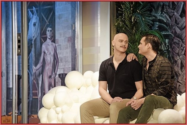 Nahezu 45 Jahre also ist die literarische Vorlage alt, eine Komödie um ein schwules Paar, das in St. Tropez einen Travestie-Club betreibt. Als der Spross des einen ausgerechnet die Tochter eines erzkonservativen Politikers heiraten will, kommt es bei dem Versuch, den freizügigen Männerhaushalt als Hochburg des Bürgerlich-Konservativen zu präsentieren, zu allerlei Wirrungen, bis sich am Ende doch alles zum Guten wendet, der Nachwuchs mit dem Segen aller Elternteile in eine gemeinsame Zukunft starten darf und der Traditionalist höchst selbst im Fummel endet. 45 Jahre also – und dennoch höchst aktuell, ist doch erst zu Beginn dieses Monats hierzulande die Gesetzesänderung, die auch gleichgeschlechtlichen Paaren die Ehe ermöglicht, in Kraft getreten. Doch das Produktionsteam um Christopher Tölle erliegt nicht der Versuchung einer Politisierung des Boulevardstoffes. Mit viel Herz und Augenzwinkern bedient Tölle so manches Klischee, Heike Seidler hat in der Kostümabteilung nicht an Federn, Pailletten, Lack und Leder gespart, um farbenfroh-schrille Roben für die Travestie-Girls zu zaubern.