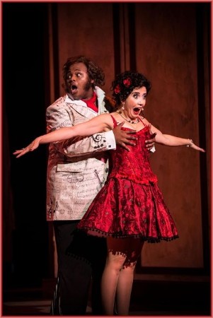 Die gesanglichen Leistungen sind fast ausnahmslos, wie man es in Meiningen gewohnt ist, einwandfrei und auf einem sehr hohen Niveau. Als Rosina steht an diesem Nachmittag die junge Finnin Carolina Krogius auf der Bühne und ich war schon etwas enttäuscht gewesen, weil ich mit der von mir hochverehrten Elif Aytekin gerechnet hatte. Aber die Enttäuschung verfliegt schnell. Ihr warmer und ausdrucksstarker Mezzosopran ist in jeder Lage präsent, flexibel mit samtigem Timbre weiß sie das Publikum für sich zu gewinnen, dazu kommt ein glaubhaftes und überzeugendes Spiel, so dass man nicht nur von einer rollendeckenden Gestaltung sondern von einer außergewöhnlichen Gestaltung sprechen muss. Ihr geliebter Lindoro, halt, Graf Almaviva wird von dem blutjungen Südafrikaner Siyabonga Maqungo gegeben und dessen Stimme ist, jedenfalls zu Beginn, etwas gewöhnungsbedürftig. Etwas gequetscht klingt sein sehr heller und scharfer Tenor, kann sich aber im Verlauf der Vorstellung steigern. Der gewitzte und verschlagene Figaro wird von einer Säule des Hauses, dem südkoreanischen Bariton Dae-Hee Shin gegeben. Er macht aus dieser Rolle wieder ein Paradestückchen, spielerisch sowieso, kann er mit seinem durchschlagskräftigem, weichem und klarem Bariton eindrucksvoll überzeugen. Er lässt die Stimme fließen und seine kräftige und wohllautende Stimmbänder überzeugen in allen Lagen. Ausgezeichnet auch Don Bartolo von dem aus der ehemaligen Tschechoslowakei stammenden Marian Krejcik. Sein vollmundiger kräftiger und durchschlagsfähiger Bass überzeugt in jedem Moment und dazu kommt ein ausgeprägtes schauspielerisches Vermögen. Humorvoll, auftrumpfend und gleichzeitig leidend macht er