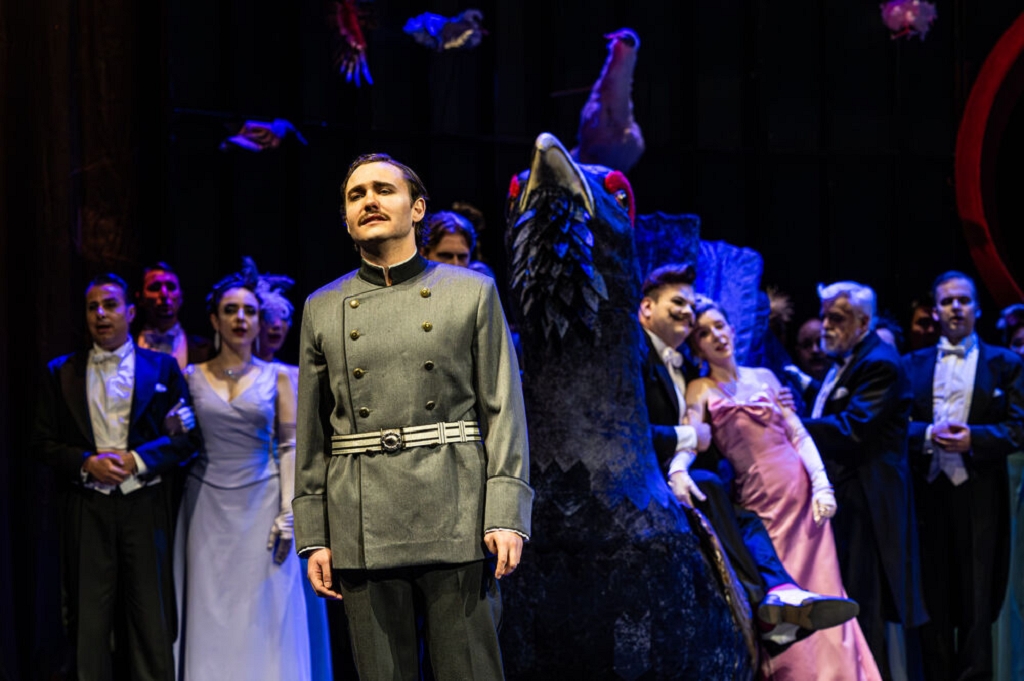 Die Meininger Hofkapelle wird an diesem heutigen Nachmittag von dem in New York City geborenen jungen Christopher Važan geleitet. Er ist als zweiter Kapellmeister seit zwei Jahren am Staatstheater verpflichtet und er bringt eine vorzügliche Leistung. Er hat das – wie praktisch immer – glänzend aufgelegt und beschwingt und mitreißend spielendes Orchester fest im Griff. Er lässt es dort auftrumpfen, wo es notwendig ist, nimmt es aber auch sängerdienlich dort zurück, wo die Gefahr besteht, die Sänger zu übertönen. Für den noch sehr jungen slowakisch-amerikanischen Dirigent und Pianist eine tolle Leistung, die auch mit viel Applaus vom Publikum belohnt wird. Er hat mit Sicherheit noch eine große Karriere vor sich. Der hervorragend eingestellte und agierende Chor, der mit enormer Spielfreude und Leidenschaft agiert, ist von Roman David Rothenaicher stimmlich toll vorbereitet worden und so macht Operette einfach nur Spaß. Doch nun zu dem, was für mich zum Allerwichtigsten an einer guten Operette gehört, den Sängern und auch hier gibt es nur Gutes zu berichten, hervorragende Leistungen und keinen einzigen Ausfall.