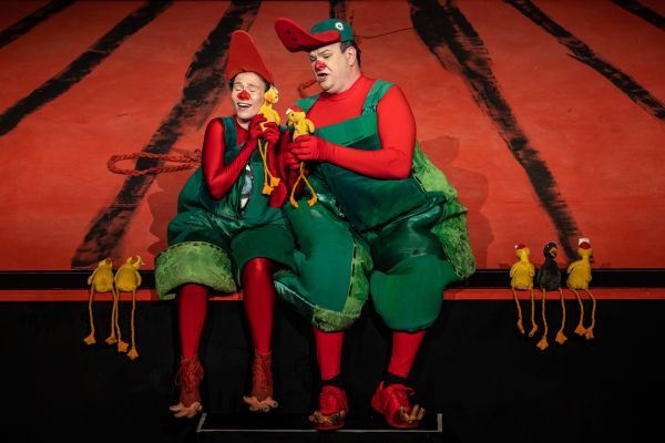 Ganz wunderbare Gags und Ideen verleihen dem Stück einen besonderen Liebreiz, wenn bunte Vögel an Schnüren auf die Bühne purzeln oder Sarastro von zwei riesigen Löwen begleitet wird, deren Gesichter so eindrucksvoll und bedrohlich wirken, aber dann ihre roten Zungen rausstrecken und sabbern. Phantasievolle Zaubertiere erscheinen und ein Spielzeugflugzeug überbringt Nachrichten. Am Ende lugt Papagenos Vogelschwänzlein noch aus der Hose, denn er will ganz viele Kinder und Papagena liefert: Fünf langbeinige Stoffküken darf er aus ihrem Hosenlatz zu Tage fördern.