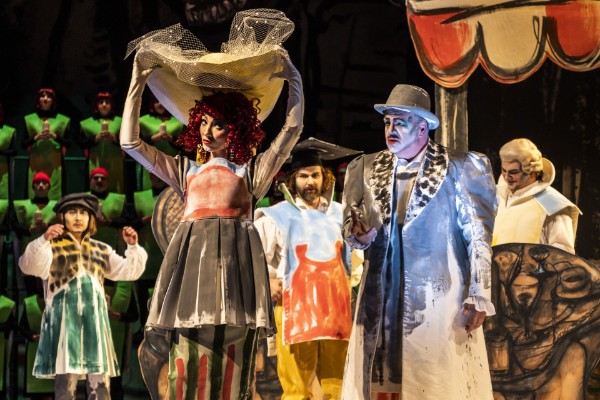 Und am Ende? Verzeiht man Markus Lüpertz die Kasperlkostüme, die schrägen, krakeligen und manchmal verstörenden Kulissen? Der Jubel, der aufbraust, als Deniz Yetim, Alex Kim und die anderen Sänger sich beim Schlussapplaus vor dem Publikum verneigen, die Bravorufe, die Standing Ovations, als Jens Neundorff von Enzberg GMD Philippe Bach zuruft: „Du bist Puccini“, zeigen: Da ist ein Gesamtkunstwerk gelungen. Ohne so ein großartiges Orchester, ohne so ein Weltklasse-Ensemble, ohne so einen perfekten Theaterapparat hätte Markus Lüpertz sein Bild nie zum Klingen gebracht.