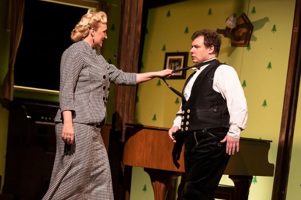 In der Rolle des Domkapellmeisters Blasius Römer können wir Stan Meus erleben. Der polnische Tenor ist in diesem Jahr seit 20 Jahren in Meiningen engagiert und in den letzten Jahren hat man ihn praktisch fast nur in kleineren Rollen erleben können. An diesem Nachmittag hat er eine der Hauptpartien, die des alternden sich unsterblich verliebenden Domkapellmeisters Blasius Römer. Und es ist toll, was er aus dieser Rolle herausholt. Zum einen bewältigt er die Partie mit seinem hellen durchschlagenden Tenor, den er energisch einzusetzen versteht und der zum Mittelpunkt des Operettenmärchens wird. Das er auch darstellerisch „alles draufhat“, braucht man nicht extra zu erwähnen, aus jedem Satz, aus jeder Geste spricht seine jahrelange Erfahrung und Bühnenpräsenz. Er berührt in seiner Darstellung, vor allem, wenn er am Ende seiner Liebe entsagen muss, wobei er in Meiningen am Schluss trotzdem nicht ganz frauenlos bleibt. Eine sehr schöne gesangliche und darstellerische Leistung des Urgesteins der Meininger Bühne, der sich den großen Applaus des Publikums redlich verdient hat. Ebenso redlich verdient wie Monika Reinhard als Bärbele, seine Haushaltshilfe, das „Lumpenprinzessle“. Sie ist geradezu prädestiniert für diese Rolle. Die Sopranistin, die in Köln aufgewachsen ist, befindet sich seit 5 Jahren in Meiningen. Mit zartem, weichem, aber dennoch durchschlagskräftigem vollem und hellem Sopran weiß sie voll zu überzeugen. Mit blühenden Höhen und feiner differenzierter Gestaltung gibt sie dem etwas armen, verhärmten, von den anderen Dorfbewohnern verspotteten Bärbele Gestalt und Kontur. Darstellerisch macht sie sich die Rolle zu eigen und kann auch hierfür den wohlverdienten stürmischen Applaus des Publikums entgegennehmen. Eine tolle Darstellung des Bärbele.