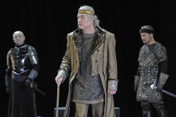 Apropos Liebestrank: Dass Richard Wagner zu seiner Cosima gesagt hat „sie könnten genauso gut ein Glas Wasser trinken“, setzt die Regie konsequent um. Brangäne versteckt den Todestrank und gießt lediglich Wasser in die Schale. Dass beim Trinken der Blitz in die Liebenden einschlägt bedarf keiner Utensilien. Und eben dieser Blitz ist auch bei den Vorspielen zu den Aufzügen 1 und 3 am Bühnenvorhang zu sehen.