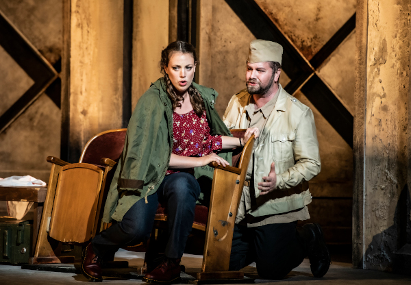 Diese Carmen ist eine Theater-Carmen, obwohl Anna Dowsley, prachtvoll lyrisch, opernhaft groß (doch nicht forciert) und dramatisch erfüllt genug agiert, um die „Wirklichkeit“ einer Figur zu beleuchten, die sich tatsächlich, wie es im Programmheft heißt, ihre „Liebhaber“, also Sexpartner, auszusuchen pflegt, auch wenn man, vertraut man Egon Voss und seinem wichtigen Aufsatz im Carmen-Band der Rowohlt-Opernreihe von 1984, auch davon überzeugt sein könnte, dass Carmen in dieser Welt des Verbrechens und des Prekariats stets Objekt, nie Subjekt – und schon gar nicht jene femme fatale ist, für die man sie einmal hielt. Anna Dowsley ist, man sieht’s in der Schmuggler-Szene, auch nur ein Opfer der brutalen Kerle, die eine eigene Art von Schmuggel betreiben – dass hier Menschen zu Ausbeutungsopfern werden, die man gegen Geldzahlungen und Passabnahmen in Container pfercht, ist weniger zeitgeistig als angemessen; zudem reibt sich diese Interpretation nicht mit dem Text, auch nicht mit der Musik, der man das Operettenhafte einer heiteren Opera comique auch dann anhört, wenn das Nürnberger Staatsorchester unter Guido Johannes Rumstadt und die Sänger nicht so luftig musizieren wie es im 19. Jahrhundert üblich (und angesichts der präzisen Bizetschen Partituranweisungen) und noch der Einspielung unter Andre Cluytens (von 1950) anhörbar ist. In Nürnberg setzt man an den dramatischen Stellen innerhalb der Dialogfassung (man spricht die deutschen Texte von Walter Felsenstein) eher auf große als auf die Tradition der „Opéra comique“ – was weder Miss Dowsleys Leistung noch die ihrer Bühnenpartnerin Julia Grüter schmälert.