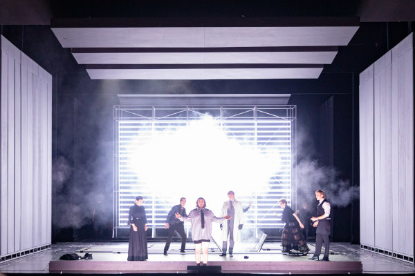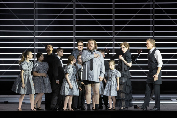 Man kann sich dem Rosenkavalier ja auf vielerlei Wegen nähern: man nimmt eine pseudohistorische Rekonstruktion des theresianischen Wien vor und spielt eine mehr oder weniger psychologische Komödie, man setzt, wie Barry Kosky, den Stoff in die Jahre kurz vor 1914, wobei man die Nostalgie als letzte Zuckungen des Wissens um eine „heile“, vom Neorokoko und Neubarock beseelte und extrem silberne Welt interpretiert, man begibt sich, wie bei André Heller, in ein süffiges, von Japonismen und von Gustav Klimts Bildwelten regiertes Vorkriegswien, man stopft, wie bei Herheim, die Mythen des späten 19. Jahrhunderts, also der Makart-Zeit, und den neuen Mythos eines vereinigten Europa bildmächtig ins Werk, ohne das Wien der Spielzeit zu ignorieren, man lässt es, wie bei Herbert Wernicke, in einem Spiegelkabinett spielen, man seziert den Stoff und bricht ihn auf irgendeine rohe Gegenwart hinunter, wie Sebastian Baumgarten es in Kassel gemacht hat, wo die braven Bürger das Premierenorchester mit ihren Trillerpfeifen anreicherten. Marco Storman macht es mit seinen Bühennbildnerinnen Frauke Löffel und Anna Rudolph, seinem Kostümgestalter Axel Aust und dem Mann am Licht, Kai Luczak, ein bisschen wie Baumgarten, setzt aber auf die bewusste Sterilität einer Szene, die fast durchwegs in Schwarz und Grau gehalten ist, und deren Grundelemente ein paar Dutzend seitliche Drehpaneele und Drehflächen an deutlich sichtbaren Metallstangen sind, hinter denen die Figuren verschwinden können, die gerade nicht für die laufende Szene „freigestellt“ sind – so kommt‘s, dass die Marschallin nach dem Lever des ersten Akts plötzlich mit einem in Goethes Sinne „bedeutenden“ leuchtend roten Kleid, das einem ästhetischen Schock gleichkommt, wieder die Bühne betritt. Ansonsten dürfen die Figuren zufrieden sein, wenn sie ein weißes oder, wie Octavian, ein Kostüm tragen, das dunkelblaue Anteile besitzt. Der neureiche Faninal trägt immerhin noch sandgraubraun. Ansonsten ist‘s dunkel in dieser Welt – wenn nicht die Lichtstäbe ihren grellen Schein auf die Bühne lenken.