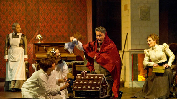 Über die Inszenierung Andreas Baeslers, die in einer Kopie des Hauses Wahnfried beginnt, sich dann in einen surrealen – aus den Horrorvorstellungen eines von der bösen Haushälterin unterdrückten Geschwisterpärchens gewobenen – Fantasiewald inmitten des plötzlich aufgebrochenen Raums begibt, um am Ende unversehens, aber nachvollziehbar wieder im bürgerlichen Elend des Pleitemachers der Familie Besenbinder zu enden: über diese hochmusikalische und feingesponnene wie bildmächtige Inszenierung wurde hier schon zweimal geschrieben. Was neu ist, sind die meisten Sänger, die in der gerade begonnenen Intendanz Jens-Daniel Herzogs zum ersten Mal die Nürnberger Bühne betreten haben.