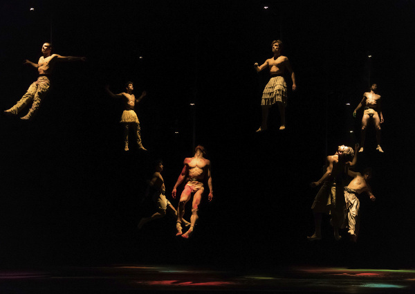 Schliesslich Monteros „M“: ein erzählender Essay über die „Männlichkeit“, wieder ausgestattet mit komponierten Gedichten, diesmal mit zwei Texten des großen spanischen Lyrikers Federico Garcia Lorca und einem Song von Lou Reed. Männer werden als „Falling Angels“ auf die Welt geworfen, üben sich in kraftstrotzend-vitalen Ritualen – zu denen Jethro Tulls fröhliche Musik hervorragend passt -, geraten in Krisen (die inneren Einschläge kommen akustisch und körperlich beängstigend nah), die (Homo)-Sexualität gerät ins Blickfeld einer intoleranten Gesellschaft, die Gruppen formieren sich immer wieder neu – und schliesslich entfliegen die Männer in einem Coup de theatre gen Himmel: als aufsteigende Engel? Als "Erlöste"? Als Träumer? Vorher hörten wir so etwas wie einen fernen gregorianischen Choral…