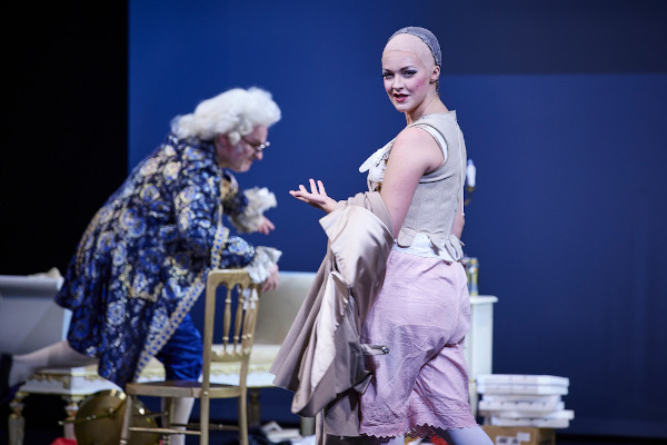 So findet die Regie eine gerechte Sicht auf das Blaubart-Problem, das weder im Sinne einer bloßen Anklage noch einer billigen Entschuldigung erledigt werden kann. So betrachtet, sind Pimpinone und Blaubart durchaus vergleichbare Typen in diesen beiden Ehekriegen – und die eigensinnige Vespetta und die fragende Judith Schwestern im Geist. Es ist schließlich kein Zufall, dass im alten Stück Thonet-Stühle von 1900 eingesetzt werden und im neuen Stück von 1900 Stühle im Rokoko-Stil zu sehen sind: eine schöne Idee der Kostüm- und Bühnenbildnerin Emine Güner, die zwei starke, aufs Wesentliche reduzierte Bühnenräume entwarf. Die Hauptsache aber sind die Sänger: Maria Ladurner und Hans Gröning bieten uns, schneidig begleitet vom Kammerorchester des Staatstheaters Nürnberg unter Andreas Paetzold, eine Menage á deux, die sich vokal und szenisch gewaschen hat. Sie ist lustig wie Offenbachs Olympia – und er ist ein dicker Depp, dessen Stimme weniger Fett als Kraft angesetzt hat. Je länger das Gebalge dauert, desto brillanter werden die beiden Protagonisten: auch stimmlich. Großer Beifall für eine kurzweilige Komödie – und ein längerer für den von Guido Johannes Rumdtadt dirigierten „Blaubart“ (in der Kammerfasssung des einstigen Nürnberger GMD Eberhard Kloke).