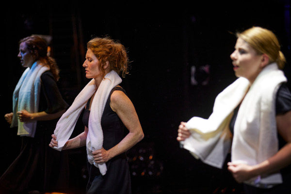 Wenn aber die Frauen, Lucretia und ihre beiden Dienerinnen, mit den eigentlich auf Christi Opfertod verweisenden, aber vorher uneigentlich als Schwitztücher (man hält sich für die Kerle in Form) benutzten Tüchern den Schmutz beseitigen, den die Männer im ersten, fast symmetrisch gebauten Akt anrichteten, und wenn der Female Chorus dies kommentiert: „Die Zeit trägt die Männer, aber die Zeit schreitet voran auf den müden Füßen der Frauen“, ist des Glück des Zuschauers vollkommen. Es ist schon dann da, wenn es das Frauenterzett hört: Hanna Larissa Naujoks als Lucretia, die ihre besten, weil erregtesten Passagen nach der Vergewaltigung hat, Marta Świderska als ältere Amme Bianca und die goldtonstrahlende Julia Grüter als Lucretias junge Dienerin Lucia. Bleiben die beiden Primae inter pares: Emily Newton als Female Chorus und Tadeusz Szlenkier als Male Chorus, zwei Erzähler, die ihren Part mit Genauigkeit und Pathos erfüllen – bis zum bitteren Ende.