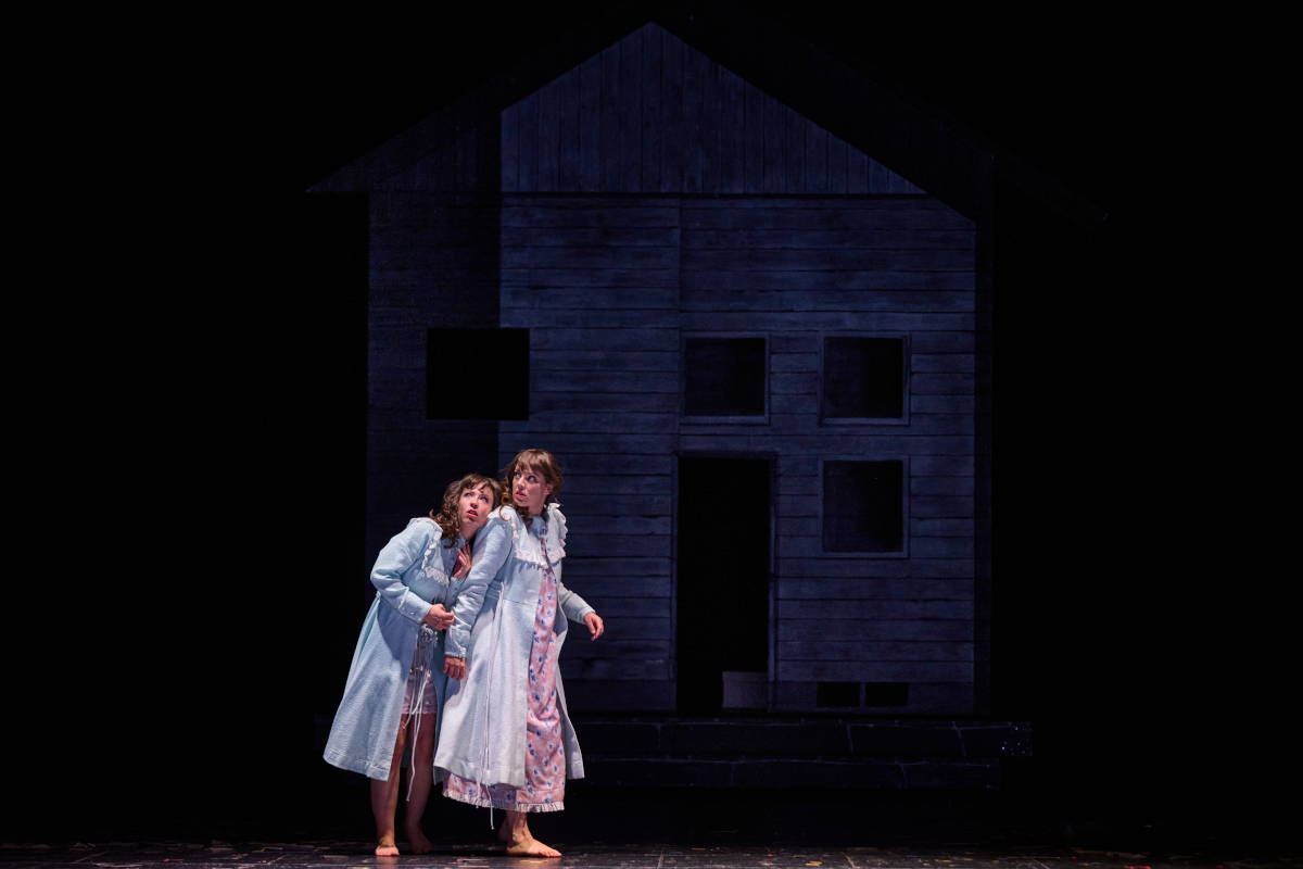 Weiteres ließe sich anführen: Wenn Agathe ausruft „Eine Totenkrone! Ein herrlicher Einfall!“, somit in einer Replik zwei verschiedene Sätze von Kinds Agathe und Kinds Ännchen zusammengefasst werden, um Wieler / Morabitos Agathes /Ännchens Todessehnsucht Ausdruck zu geben, während sie keine Totenkrone, sondern den Brautkranz in Händen hält (es gibt keine Totenkrone in der Neuinszenierung), wird die Straffung des Texts zur Manipulation, die man psychologisch spannend oder interpretatorisch verfehlt halten kann. Dass Max, am Seil baumelnd, einmal nach oben gezogen wird, um dann auszurufen: „Ich muss! Ich trotze allen Schrecken!“, und dass im Übergang vom Forsthaus zur „furchtbaren Waldschlucht“ einige Minuten lang, sehr stark, die beiden ängstlichen Frauen auf der einsamen Bühne zu sehen sind („Eh’ noch wieder Abend graut, ist sie tot, die zarte Braut“, singt der Gespensterchor), beweist zwischendurch, dass Wieler und Morabito über eine genaue Textkenntnis verfügen, deren theoretische Schlüsse ausgesprochen gut, deren praktische Umsetzung für viele Besucher aber in den meisten Fällen in der Regel leider unverständlich ist. Und das Finale bleibt mit seiner Chorusline inmitten der Dorfschluchten so beiläufig wie nur möglich.