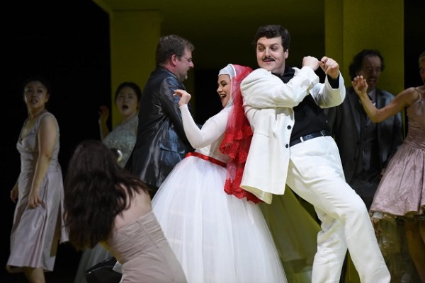 Katharina Konradi (Zerlina), Benjamin Russell (Masetto) und Ensemble